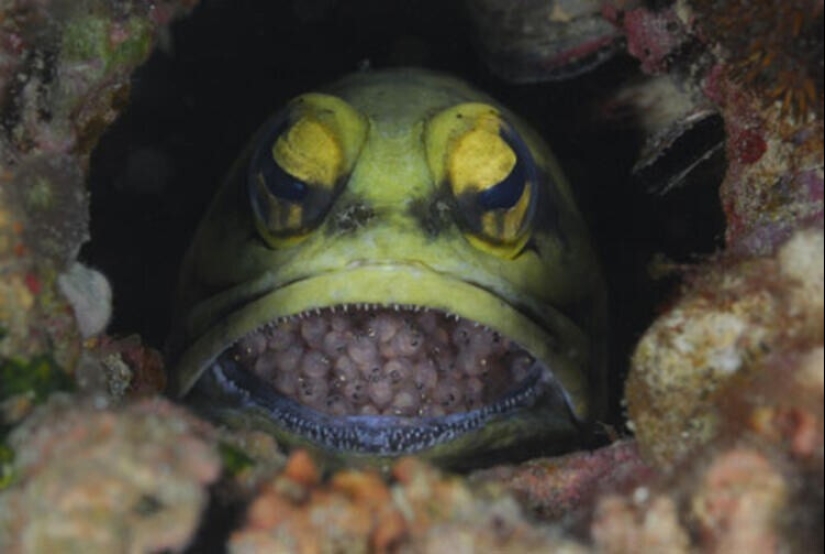 Yellow-headed shirokorot bears its eggs in its mouth