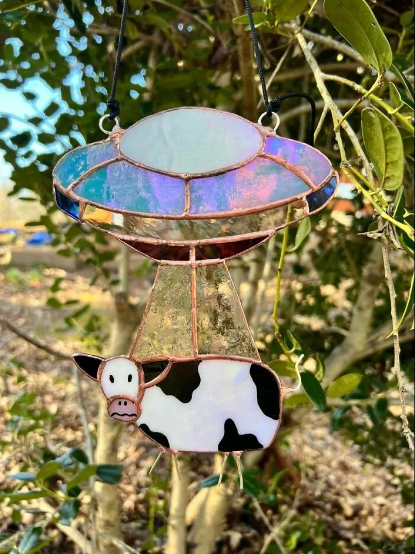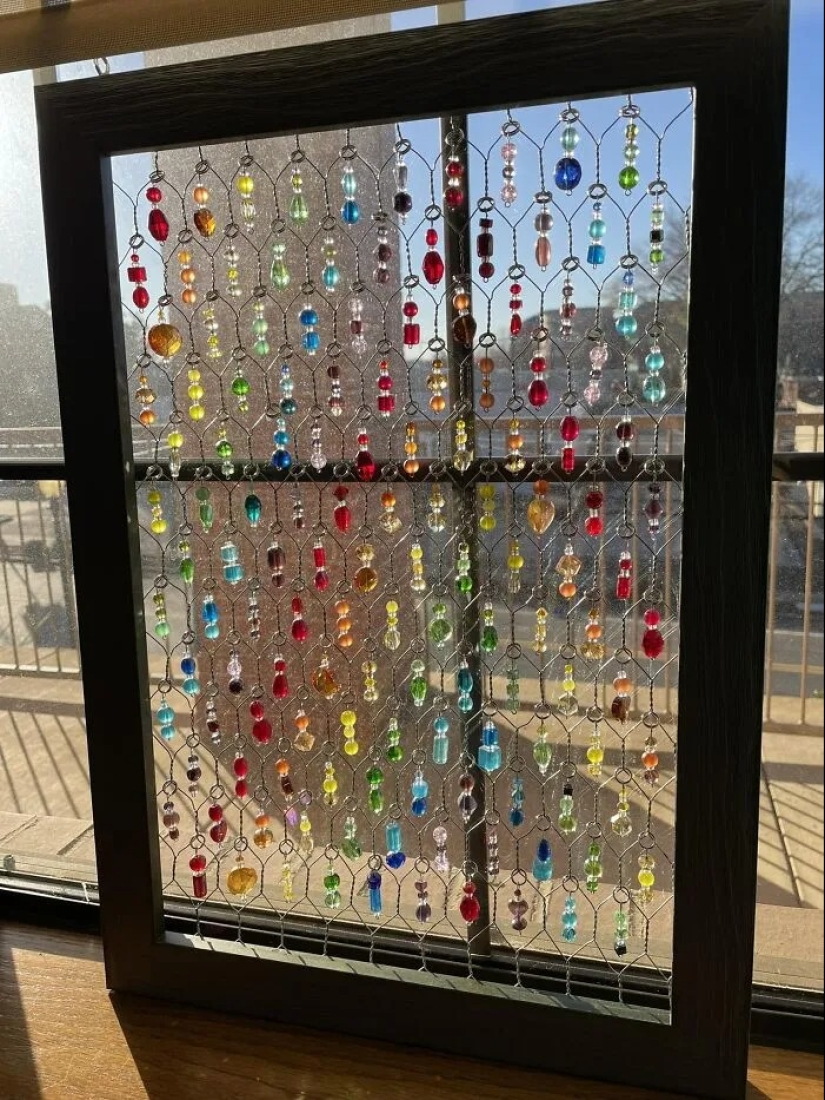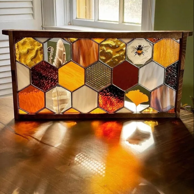 "I created this stained glass window from a drawing that my nephew drew. I called it "I'm so happy I feel sick.""