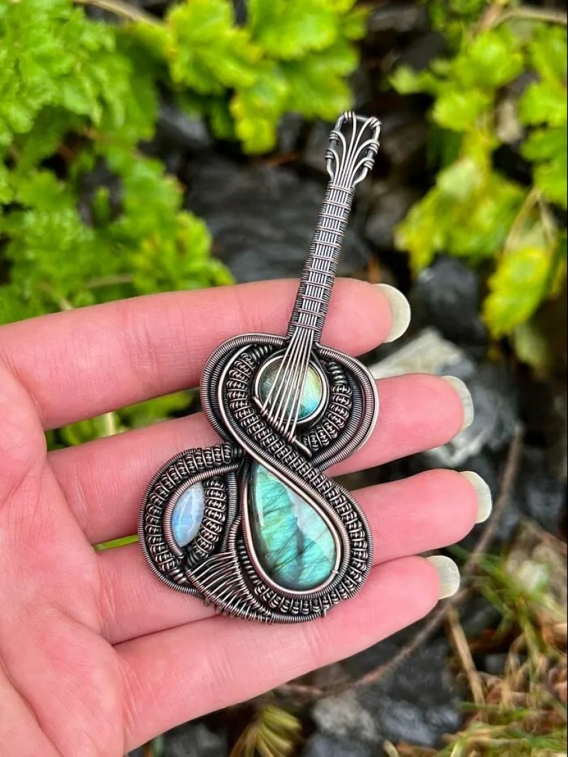 This product is woven from copper wire of three different sections, and then oxidized and polished to give it an aged appearance.