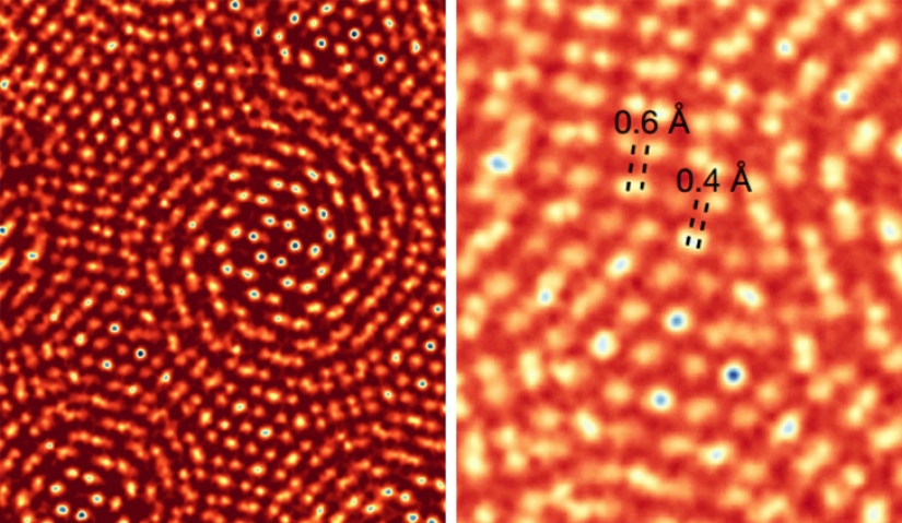 A few more images of the atom, which were obtained with the help of a super-powerful device Electron Microscope Pixel Array Detector (EMPAD). It allows you to observe objects with a record resolution of 0.39 Å.
