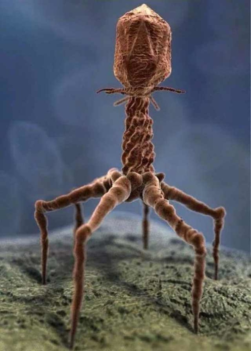 This mysterious "creature" is a bacteriophage-a virus that infects bacteria.