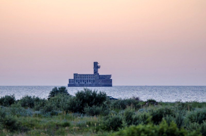 The workshop is still on the plant's balance sheet, but it is unlikely to be needed by anyone. After the rise of the Caspian Sea, which occurred from 1978 to 1995, waves and ice floes destroyed its foundation. The testers of military ekranoplans also contributed to the chaos reigning in the fort, aiming the guns of their fantastic ships at a lonely building in the open sea.