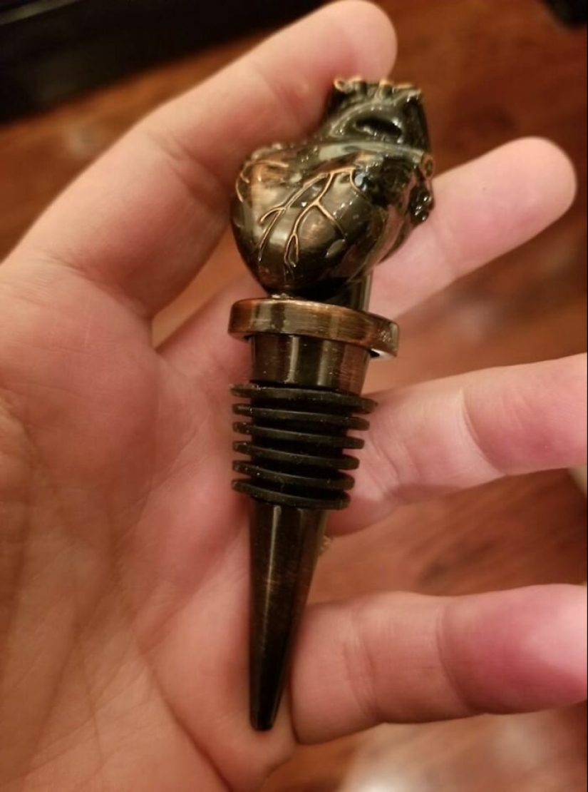 "My favorite thing. Wine stopper in the form of a bronze copy of the human heart. The picture doesn't do it justice. I'm a nurse, maybe that's why I like her so much"