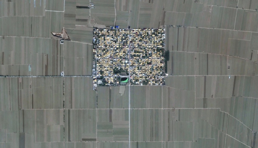 The town, surrounded by farmland, in Gaocheng, Hebei province, China. (© Google, GeoEye)