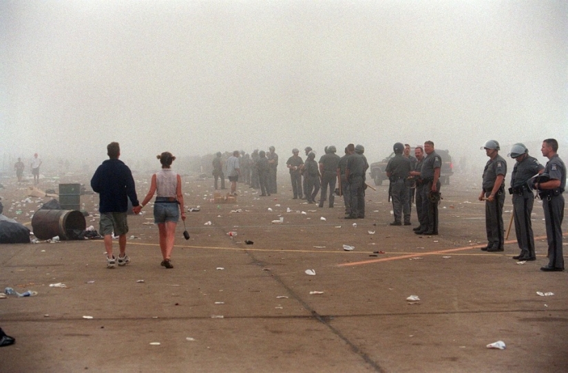 On" Woodstock-99 " two people were killed, several were victims of rape. Deranged thugs set things on fire and lay in feces in 38-degree heat. Impressive photos from the scene of the tragic events demonstrate what a nightmare was going on during the clashes between the participants of the infamous event.