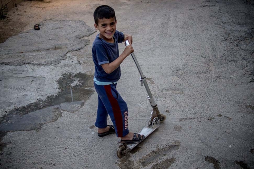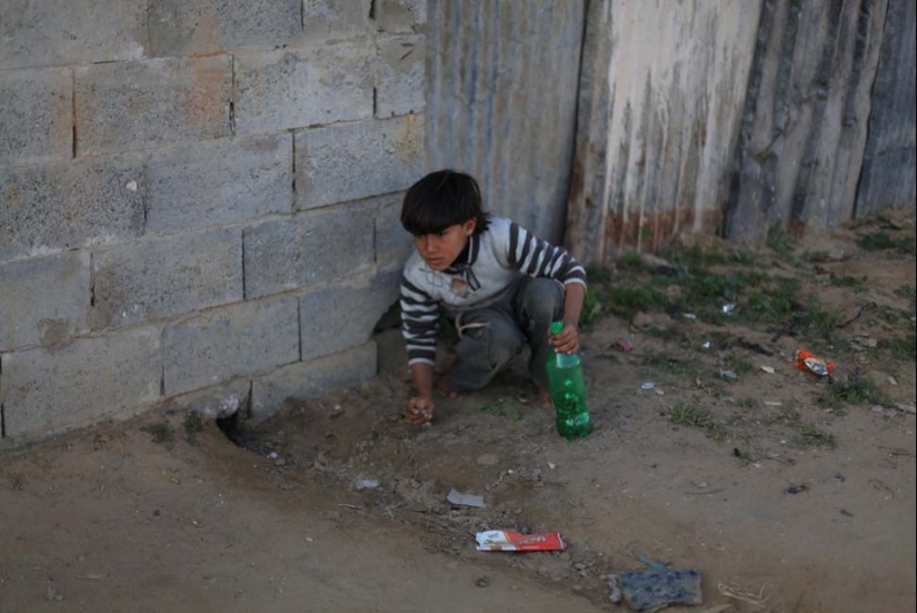 Palestine, family income — $ 112 per adult per month. My favorite toy is a plastic bottle.
