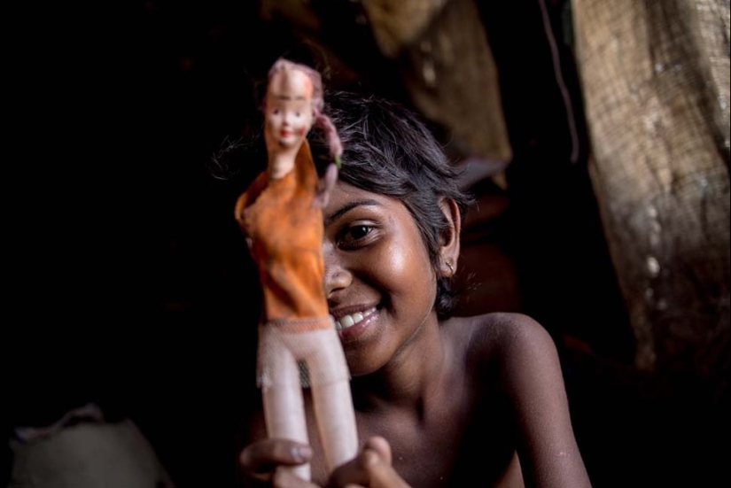 India, family income — $ 80 per adult per month. My favorite toy is a broken plastic doll.