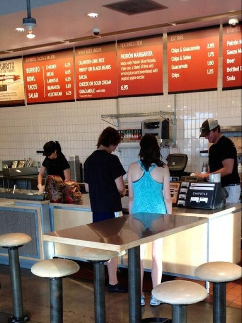 The waitress runs through the bill, not even suspecting that she has such a sexy costume.