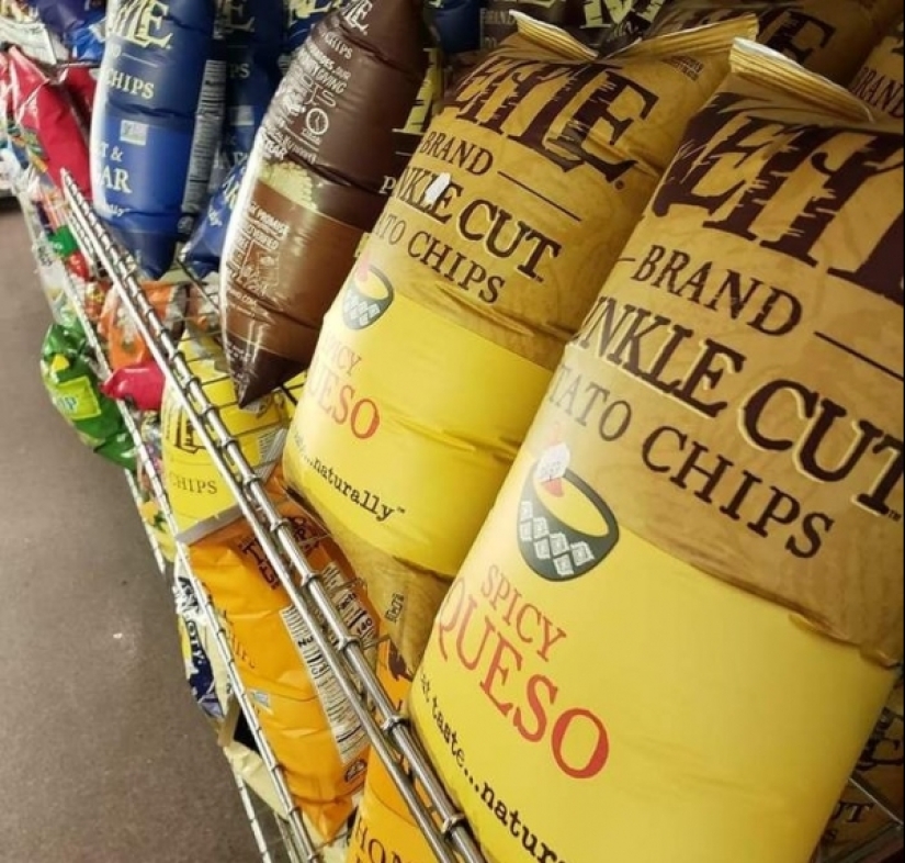 This is how packets of chips look in a store at an altitude of 2,270 m above sea level
