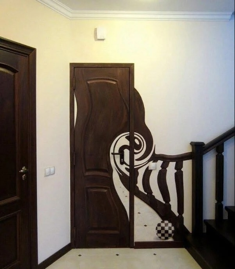 Looking at this door, a sober person gets a little dizzy, we imagine how the owner of the apartment finds the keyhole