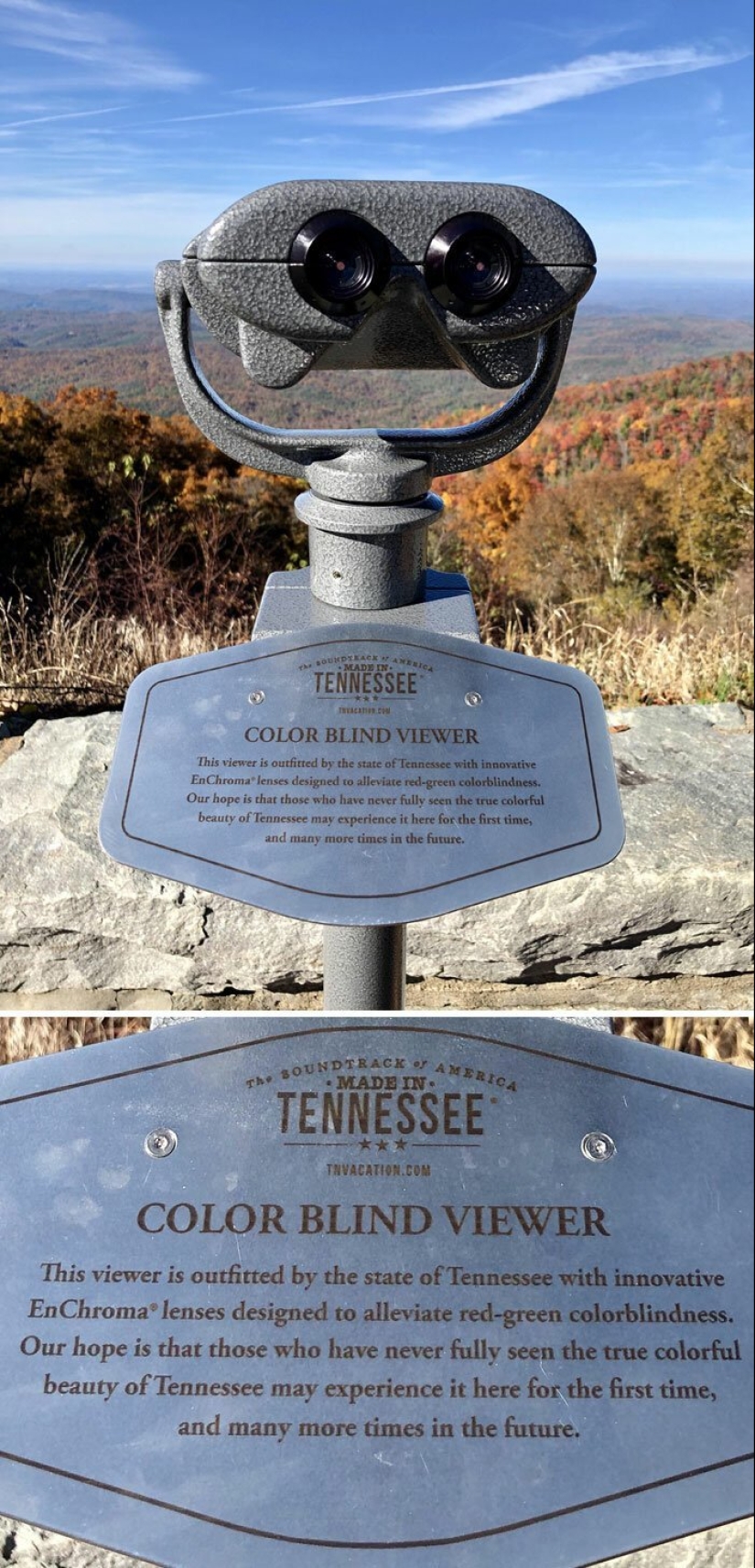 El Departamento de turismo de Tennessee visores montados sobre todo por el color ciego en los parques y otros lugares con hermosas vistas.