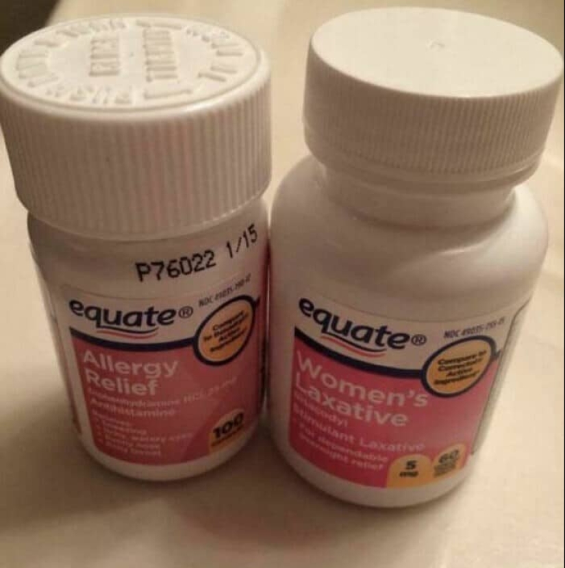 A la izquierda hay un remedio para la alergia, a la derecha un laxante And y descubrirás qué bebiste de camino al trabajo.