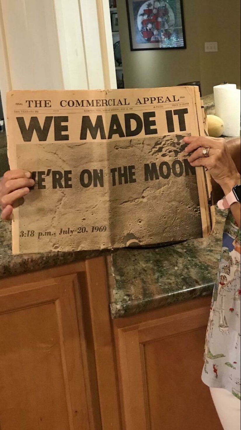 "Mi bisabuela tenía un periódico con las noticias sobre el aterrizaje de América en la luna. La encontramos hoy"