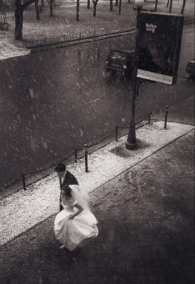 Vale la pena señalar que aquellos que han estado en Muchos maestros extranjeros también no perdieron la oportunidad de tomar una foto de boda. Debajo hay una maravillosa toma de la oficina de registro de Elliot Erwitt, así como fotos de la calle de los recién casados Henri Cartier-Bresson y Ferdinando Shanna.