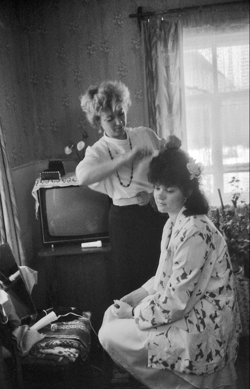Mañana de la novia. Sheshuyevo, región de Bryansk, 1990. El autor de la foto: Sergey Sukharev.