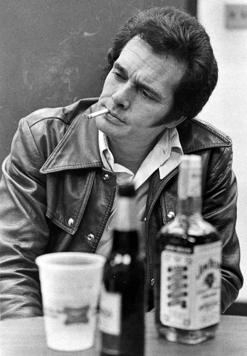La cantante de música Country Merle haggard en el backstage antes del show. Madison, Wisconsin, 1972.