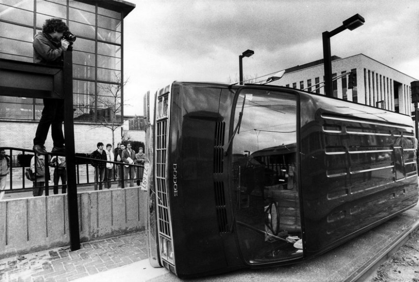 Tiroteo en un vagón volcado en Boston en la década de 1980.