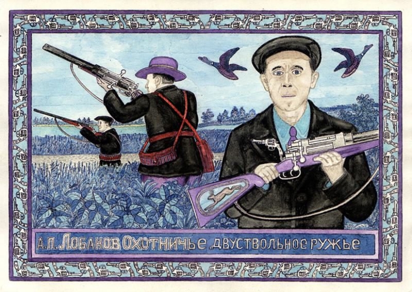 El tema de que el arma se ejecuta a través de la creatividad Lobanova: incluso los líderes de la pintó con armas de fuego, los perros y la caza. Hay una teoría de que durante la guerra los soldados que prometió darle al niño un rifle, pero no mantener su palabra. Quizás esto influyó en la artista.