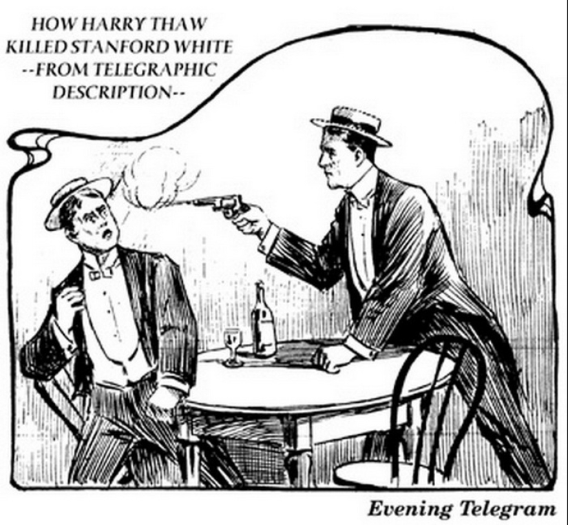 Por suerte, el novio no estaba enojado con Susie. Harry Tau se obsesionó con la idea de que Stanford white había "arruinado" su novia. Él decidió castigar al delincuente de 25 de Junio de 1906. Ese día se realizó un evento con motivo de la inauguración del teatro "Madison Square garden". Persiguiendo Stanford white, el joven desparasitado su camino a la multitud. Harry Tau ni siquiera estaba tratando de ocultar tras un disparo sonó a cabo.