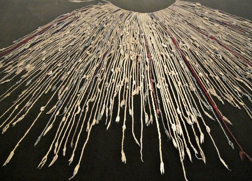 This picture was supplemented by universal accounting and reporting. All the information about the harvest and other important things was carefully counted and recorded using a knotted letter-kipu. On the rope-base, additional ropes were hung, in which a fairly large amount of data was encrypted using color and different nodes. The largest kipu known to us weighs six kilograms.
