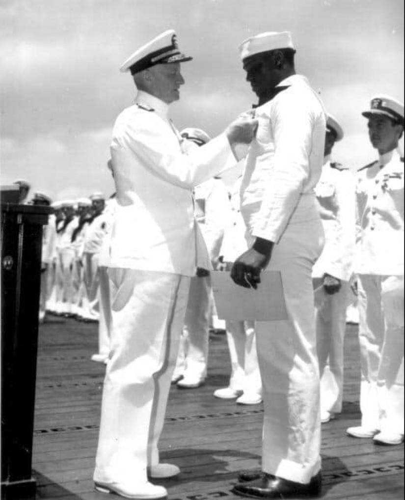 He was one of the last sailors to leave the ship when the West Virginia sank, and he swam 365 meters to shore. Miller became the first black sailor to be awarded the Navy Cross. In 2020, the Navy named an aircraft carrier after him.
