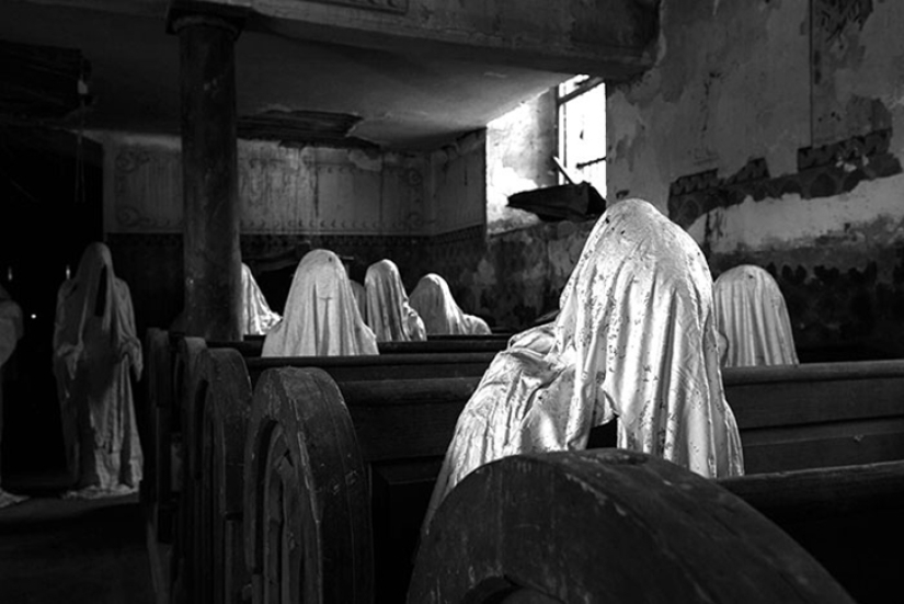 Goosebumps and a sticky, hopeless feeling of dread. A dark building surrounded by a cemetery, creaking floors, cold. You go inside and see the ghosts — white, shimmering figures in the semi-darkness of the church, which filled the entire space from the entrance to the altar. They sit on pews, stand in the aisle and against the walls, stand near the pulpit, and instead of faces, black bottomless holes look at you. There is a ringing silence in the church, but it seems louder than the sounds of the most powerful explosion.