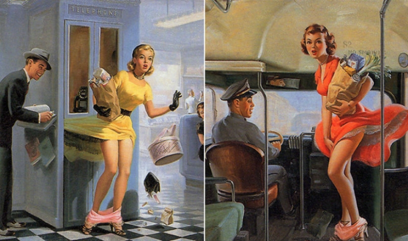 By Pictolic https://www.pictolic.com/article/womens-panties-against-gravity1.htmlThe series of paintings "Falling panties" appeared in the 40s of the XX century and made its creator famous. Over the next 20 years, Art Fram, an artist from Chicago, regularly created new visual stories about how girls found themselves in a terribly awkward situation — around a man, everything falls out of their hands, and silk underwear flies down their slender legs.