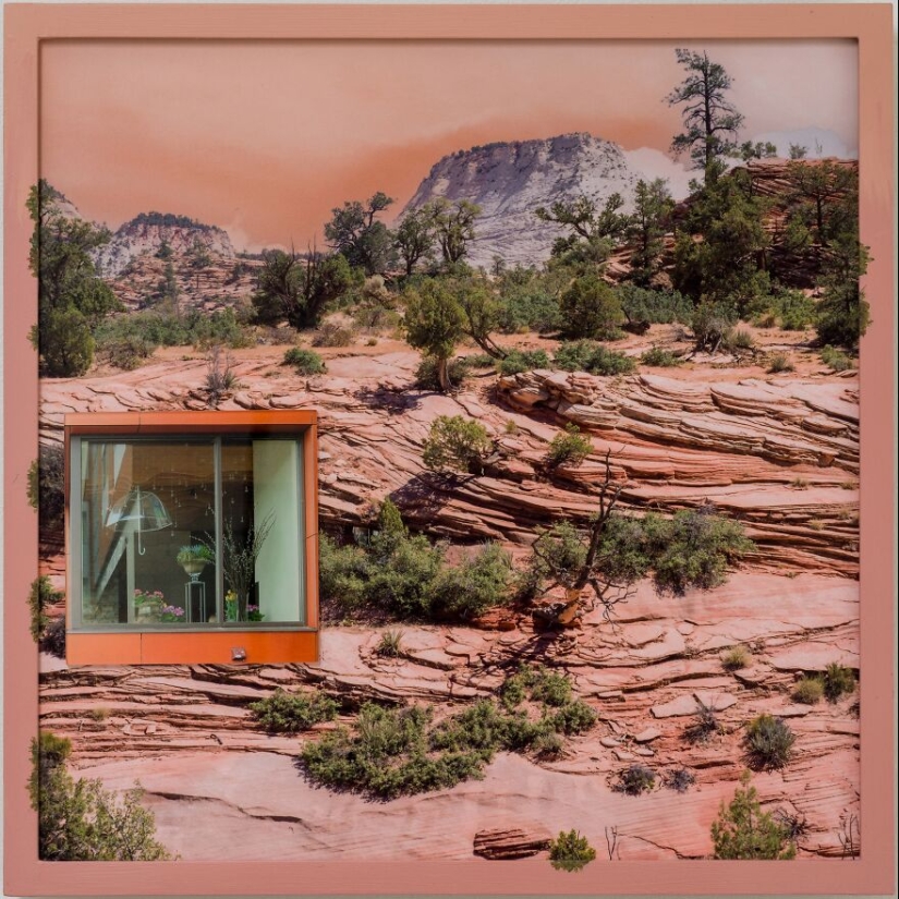 Siento asombro ante los paisajes abiertos y la humanidad parece pequeña e insignificante. Ha habido treinta y siete épocas en la historia de la Tierra. Hemos sido parte de dos. Monté escenas de habitación humana detrás de acrílico y las fijé dentro de paisajes desérticos panorámicos. Las imágenes se proyectan sobre marcos pintados a mano, aludiendo al próximo capítulo en la historia del planeta. A pesar de la actividad humana, la Tierra continúa transformándose. Sus habitantes no pueden escapar de su permanencia y del poder que tiene para dar forma a su existencia. A medida que la naturaleza se reinventa, ¿podemos adaptarnos con ella?