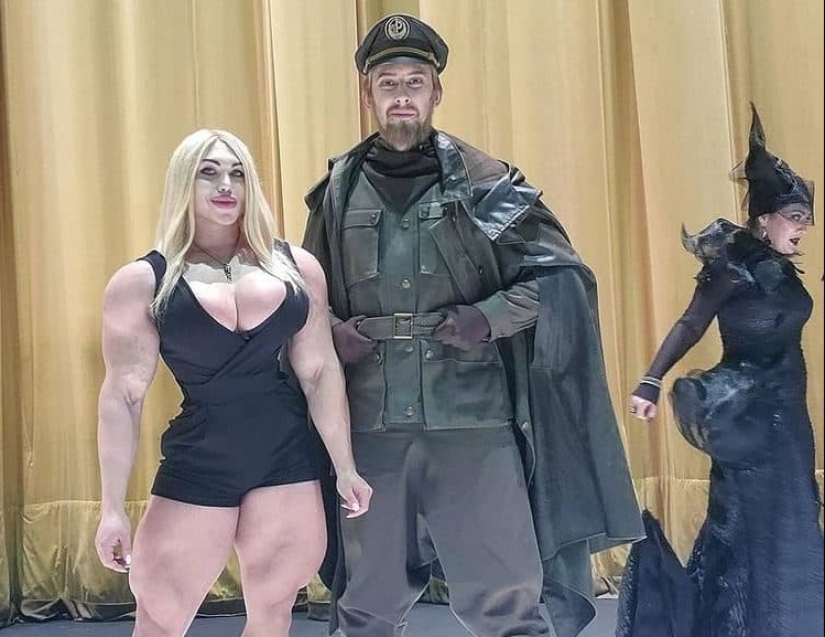 Culturista Natalia Kuznetsova con el artista del Teatro Bolshoi