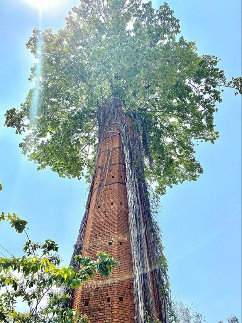 Antiguo templo de Shiva está firmemente rodeado por el sagrado árbol Bodhi, Bangladesh