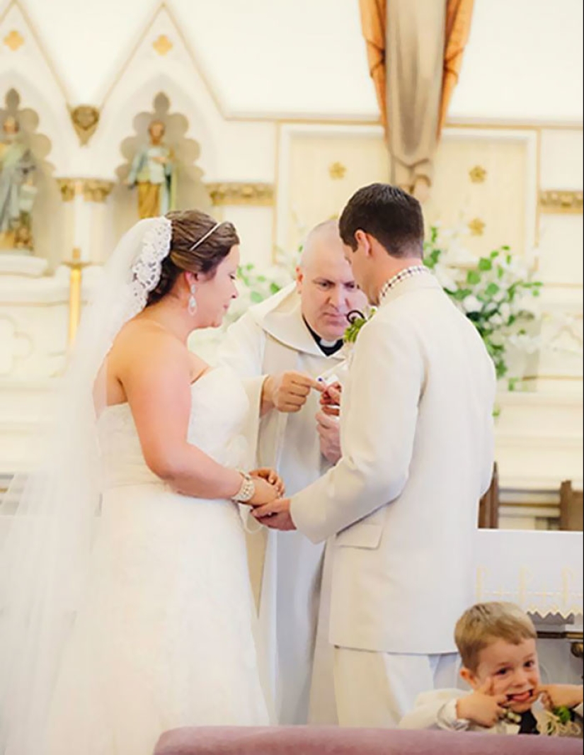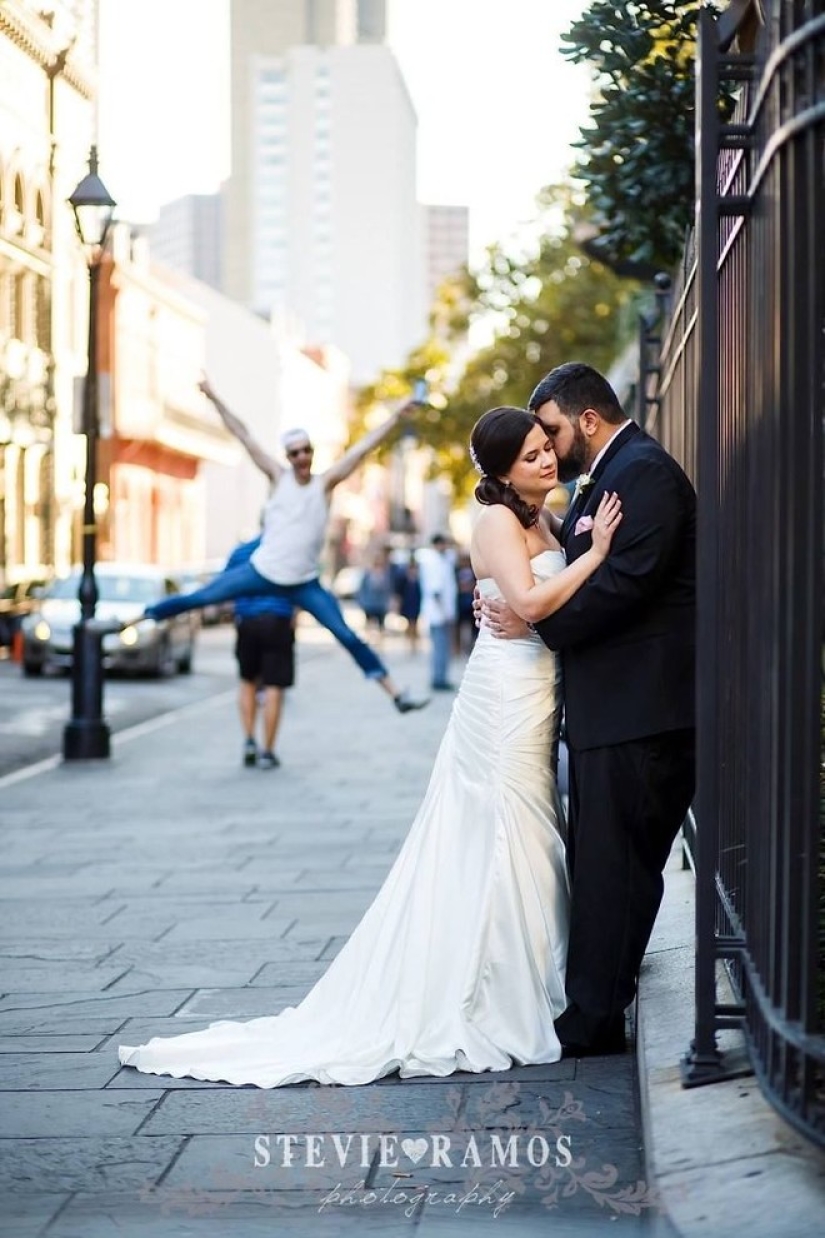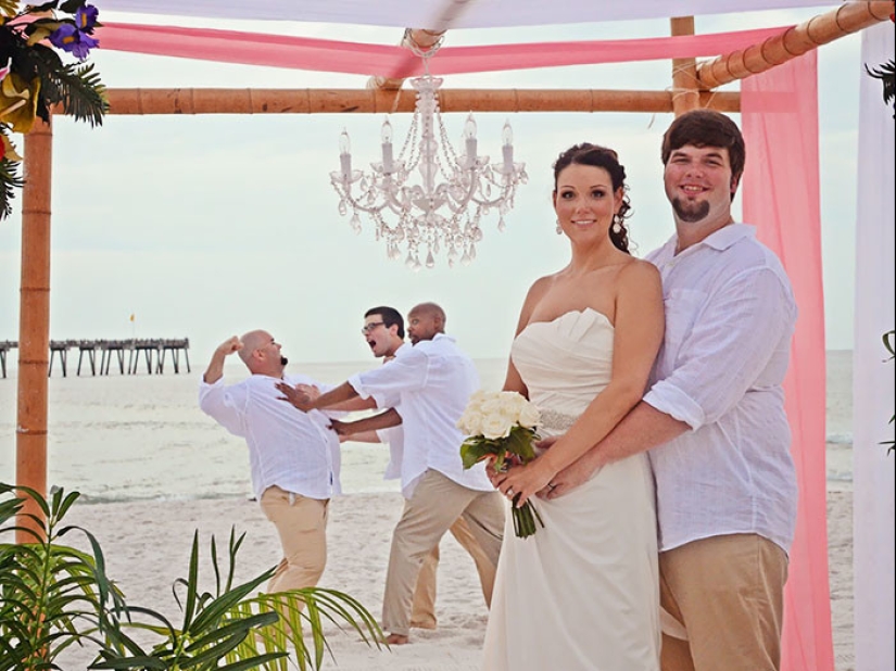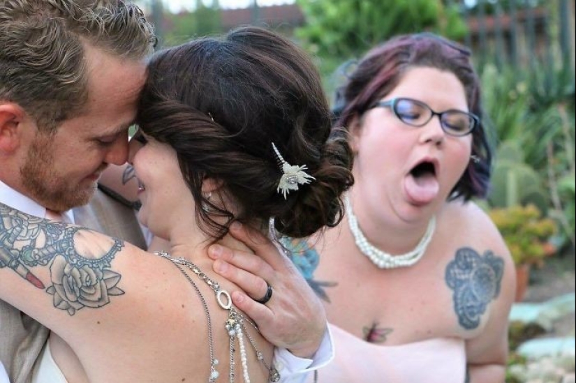 Las mujeres se toman las bodas en serio. A diferencia de los hombres corriendo junto a animales, niños y... otras mujeres. En principio, no entendemos por qué se necesitan fotos de boda — es como filmar tu propia ejecución. ¿Es realmente agradable mirar más tarde? Es imposible mirar estas imágenes recopiladas por todo Internet sin estremecerse, pero al menos resultó divertido. Es decir, son como la película " Bitter!".