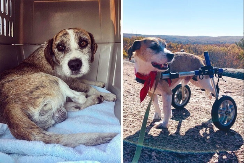 "Nuestro maravilloso Toby estaba tendido en una zanja con sus patas traseras paralizadas. Ahora es el rey de las calles con dos ruedas rápidas"