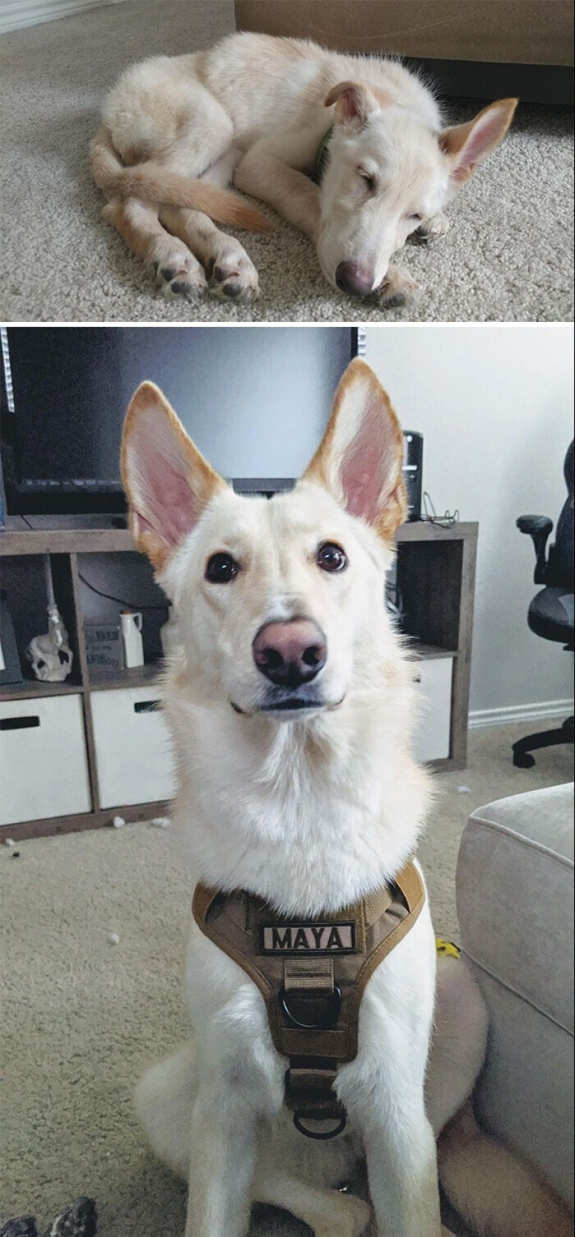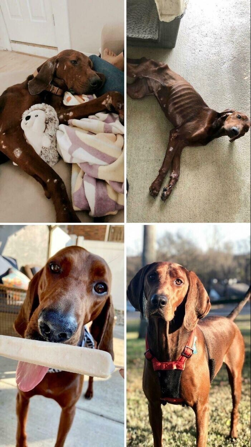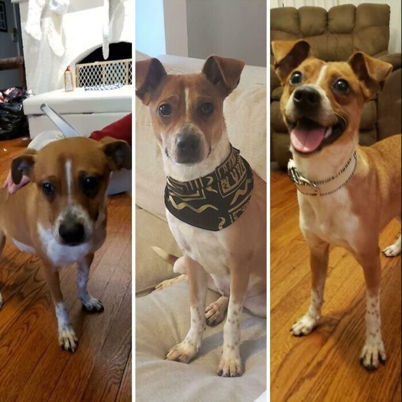 "La evolución de las orejas de nuestro perro. Lo encontramos en la calle, y ahora es nuestro milagro favorito"