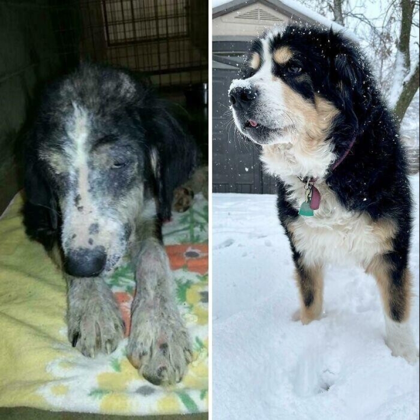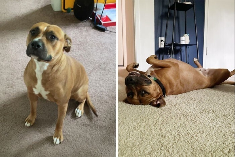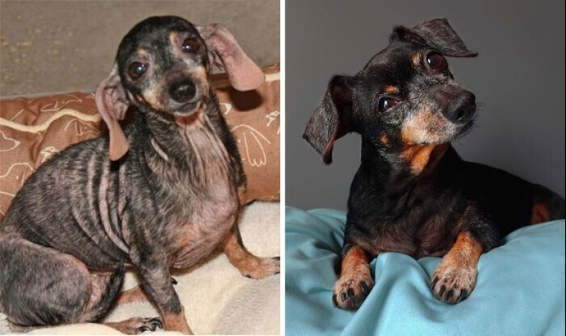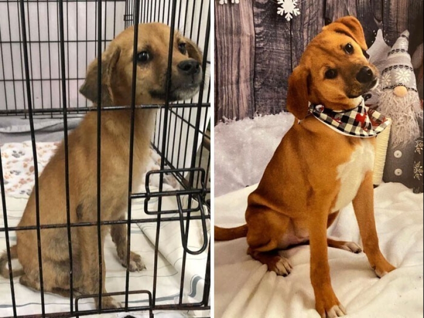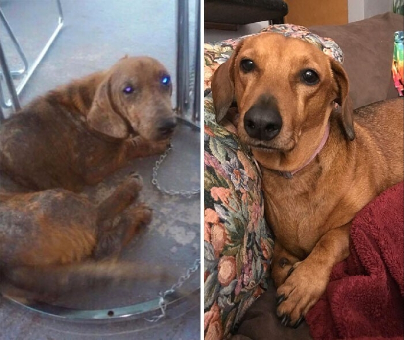 "La primera foto es el día en que sacamos nuestro milagro del refugio. El segundo - en un día, y el tercero - en una semana"