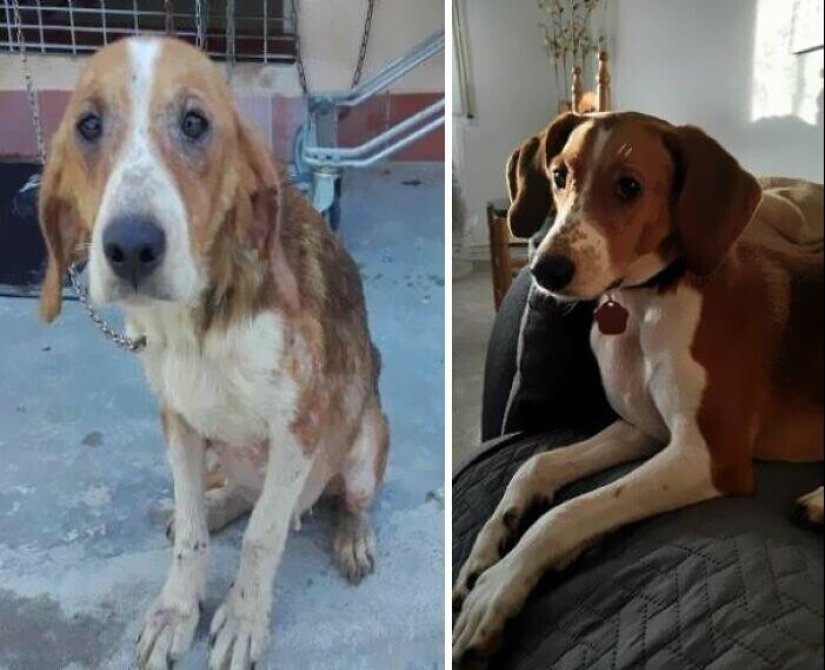 De un cachorro herido y sacrificado a un perro activo y feliz.