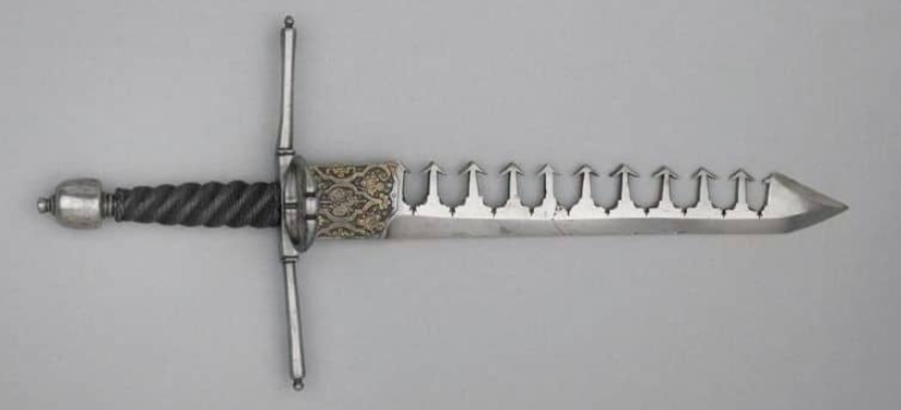 Una daga para repeler un ataque. Fue sostenido en su mano izquierda para repeler los golpes de la espada, y la derecha fue atacada en este momento.