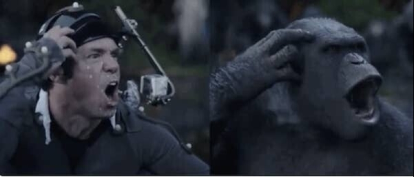 Una escena de la película de 2011 Rise of the Planet of the Apes antes y después de la adición de efectos visuales digitales