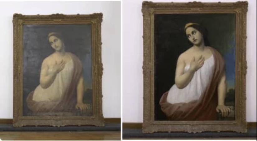 Pintura del siglo XIX antes y después de la restauración