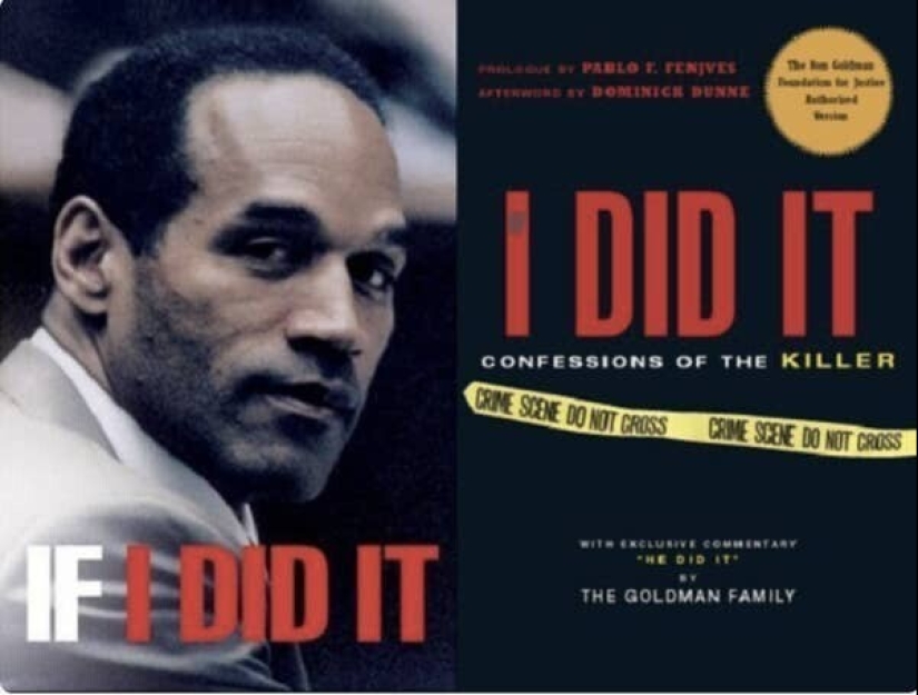 El libro de O. J. Simpson "If I Did It" antes y después de la corte de bancarrota transfirió los derechos del libro a la familia Goldman. En el libro, O. J. Simpson describió lo que llamó una descripción "hipotética" de cómo pudo haber matado a Nicole Brown Simpson y Ronald Goldman.