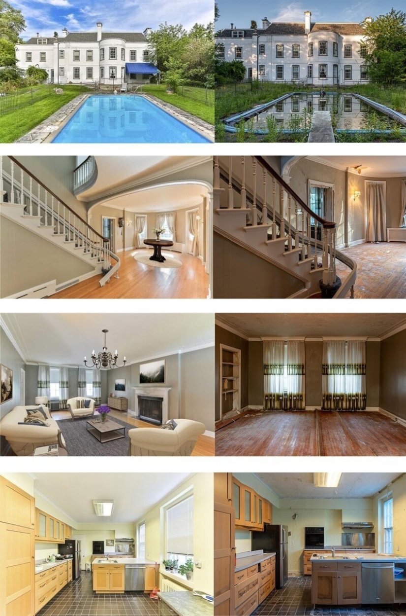 La mansión antes y después de que fue abandonada