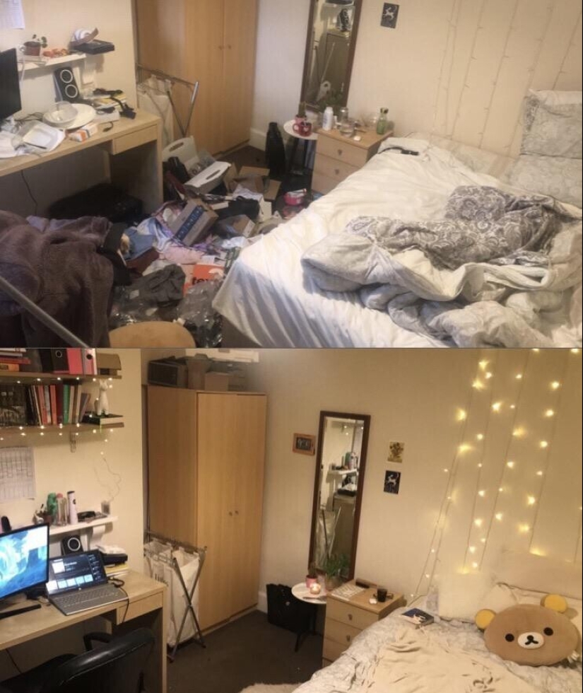 La habitación de una persona durante y después de un período depresivo