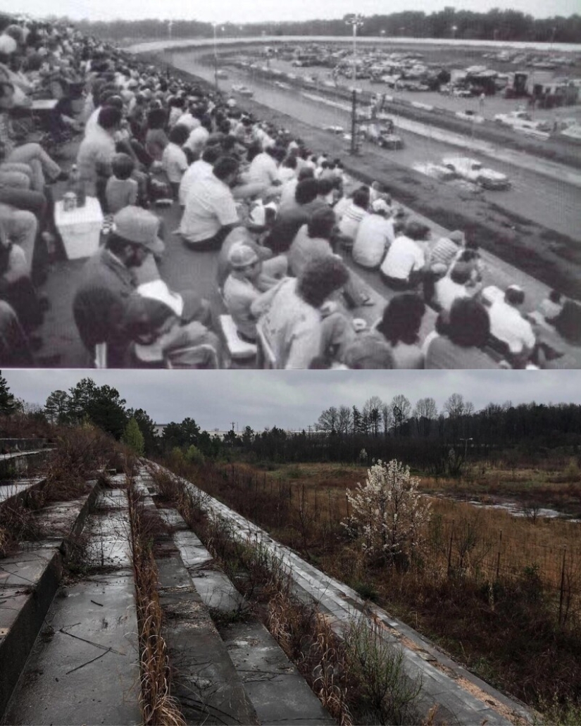 Una pista de carreras en Charlotte, Carolina del Norte, en los años 70 u 80 y hoy