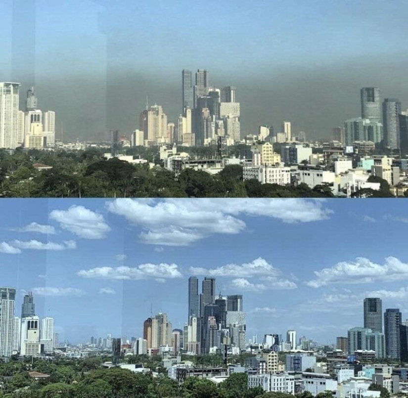 Manila Skyline antes y después de la cuarentena
