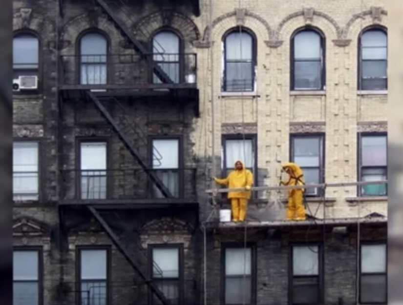 Y el edificio antes y después fue limpiado con una lavadora de alta presión