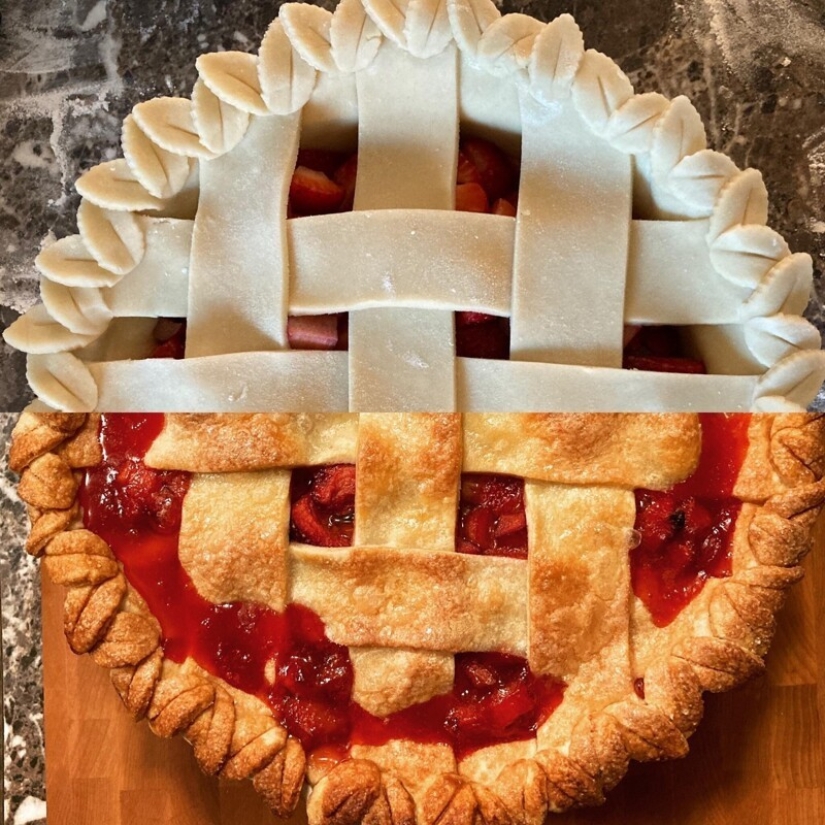 Pastel antes y después de hornear