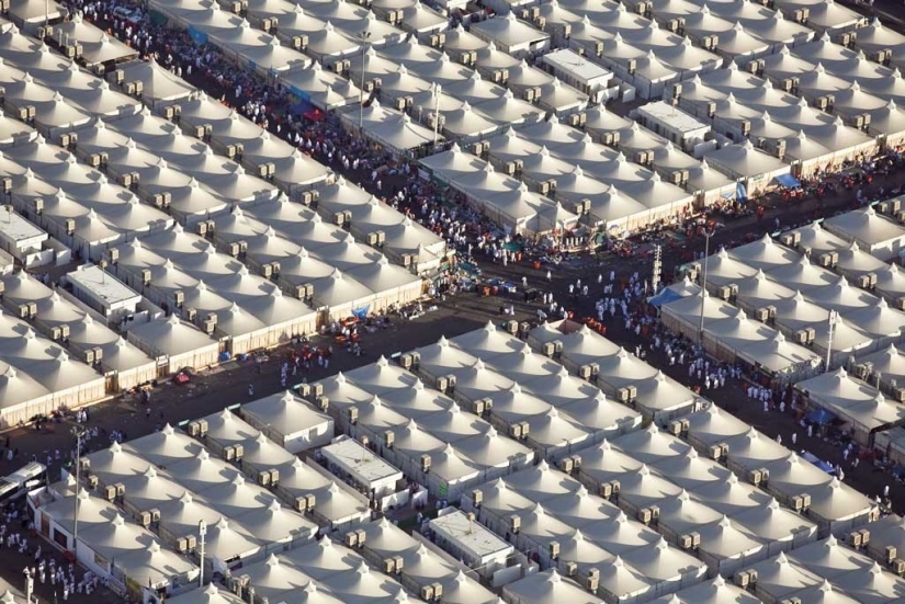 La ciudad de tiendas de campaña en el Valle de Mina no puede ser llamada una ciudad en el sentido completo de la palabra, aunque supera a muchos asentamientos en tamaño. Probablemente, esto solo es posible en Arabia Saudita, una ciudad de 40 mil tiendas de campaña ha aparecido aquí, donde aproximadamente 3 millones de musulmanes vienen cada año durante cinco días para realizar el Hayy, la principal peregrinación sagrada del Islam asociada con visitar La Meca. Una vez en la vida, debe ser llevada a cabo por todos los musulmanes.