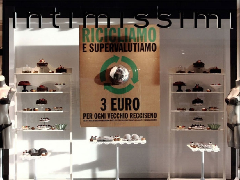 La compañía italiana Intimates también acepta sujetadores viejos, pero los usa para el aislamiento acústico de edificios. Una mujer recibe 4 4 por traer un sujetador, un buen incentivo para participar en salvar el planeta.