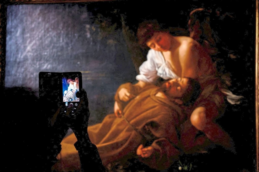 Un visitante fotografía un cuadro de Caravaggio en la exposición del Palazzo Barberini, en Roma.