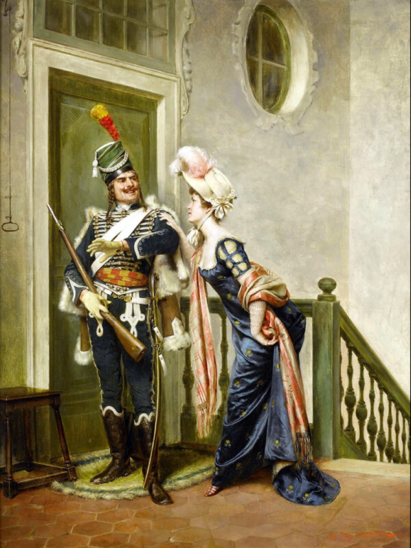 Una joven y rica dama rápidamente encontró espíritus afines en tres húsares del Regimiento de Guardias de Caballos a la vez, desesperados, ingeniosos e increíblemente atractivos. Los tres se esforzaron mucho por alegrar la soledad de la esposa del general, por lo que la mujer agradecida decidió alentarlos con dinero.