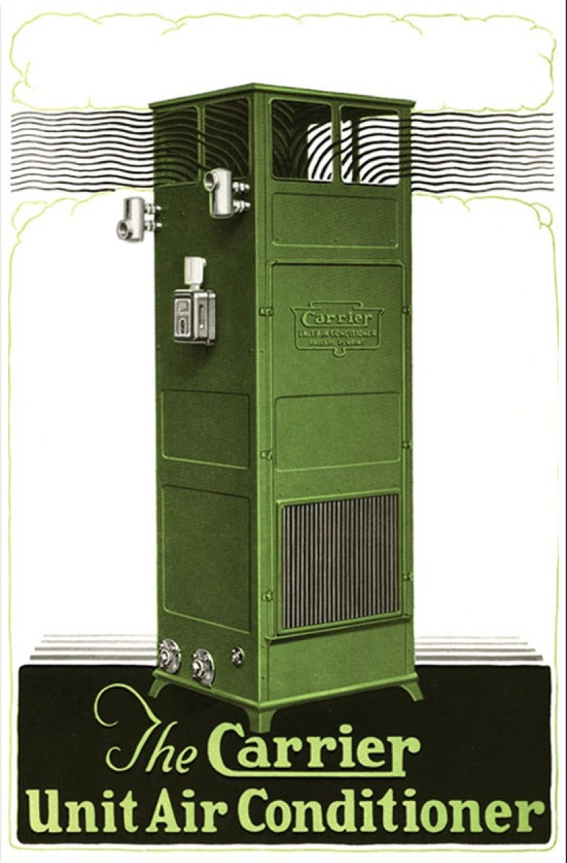 El hombre que cambió Estados Unidos fue Willis Carrier, de 25 años, de Buffalo, Nueva York, que trabajaba como ingeniero en Buffalo Forge Company. Resolviendo el problema de la humedad excesiva en la imprenta de Brooklyn en 1902, ensambló e instaló en su sótano un dispositivo que se convirtió en el primer aire acondicionado de la historia. Pero no era la unidad compacta a la que estamos acostumbrados hoy en día, sino un enorme mecanismo que ocupaba casi todo el sótano. En el mismo 1902, el sistema de aire acondicionado fue ordenado por la Bolsa de Valores de Nueva York, que lo instaló ya no para resolver problemas de producción, sino para la comodidad de los empleados que trabajaban en el edificio. Luego se fue, se fue. El primer edificio de oficinas con sistema de aire acondicionado fue el Edificio Ermor en Kansas, Missouri, y cada una de sus habitaciones estaba equipada con un termostato individual.